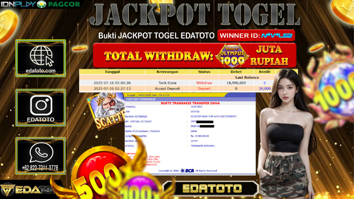 Selamat Kepada Pemilik user ID : Jec**11 Hari/Tanggal : Selasa/ 15, Juli 2025 Jackpot : Rp. 16.000.000 JT . . .