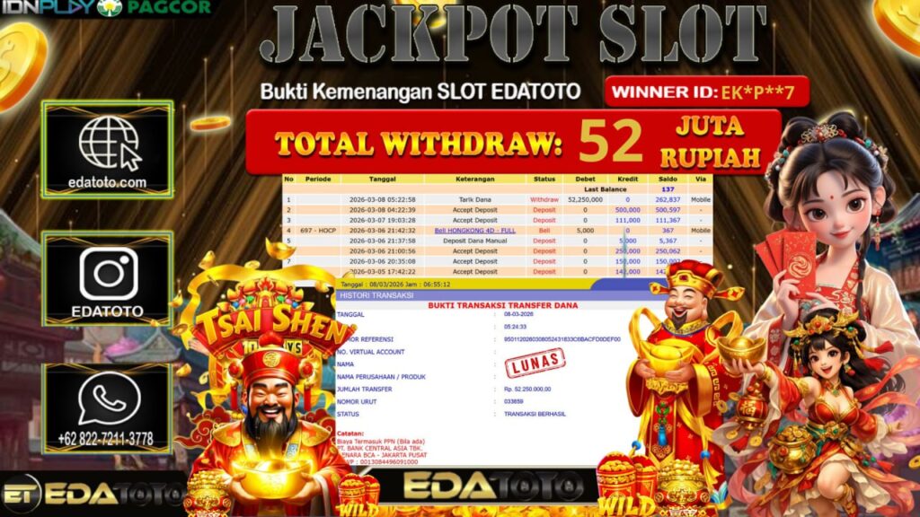 Selamat kepada member setia EDATOTO telah mendapatkan JP Bermain Di : Chests Of Cai Shen 2