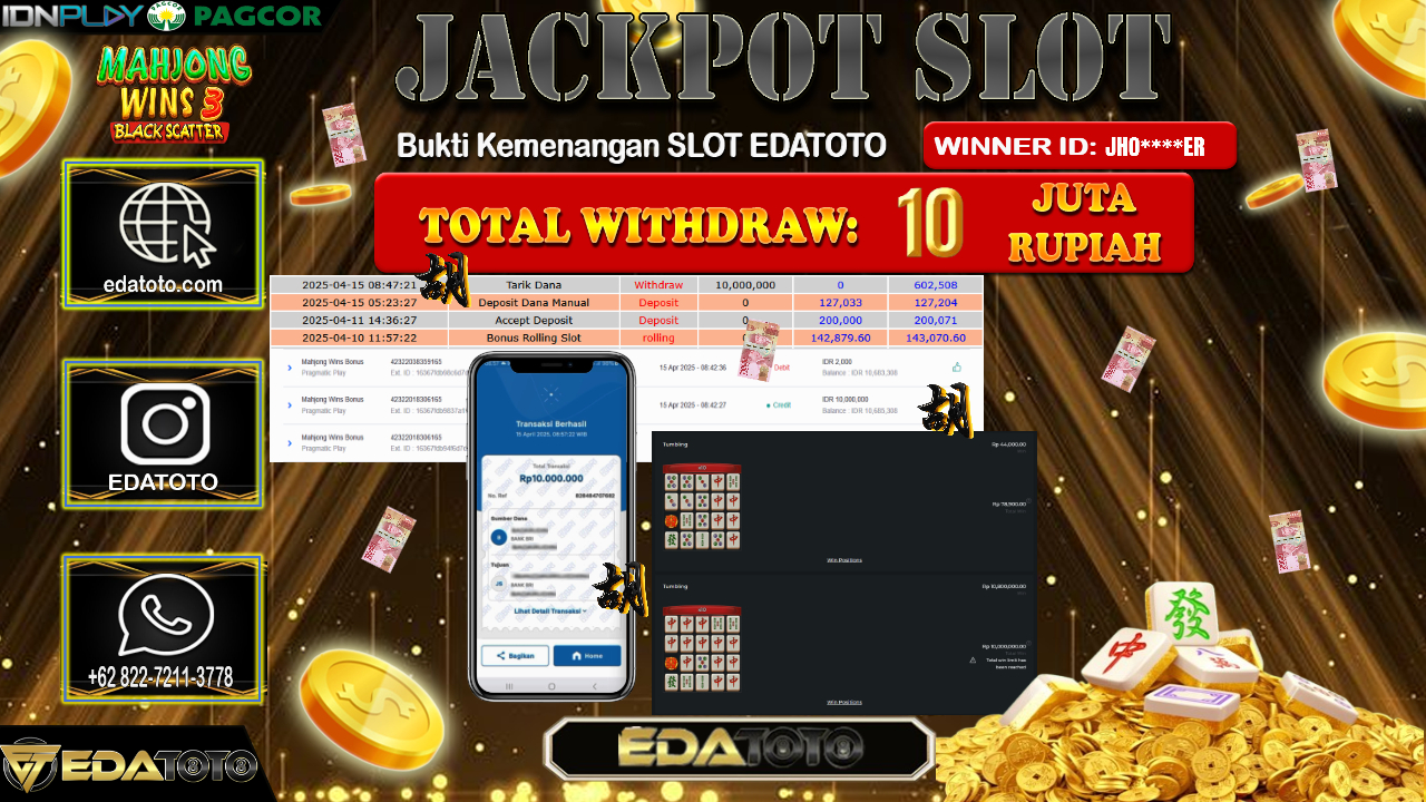 Selamat Kepada Pemilik user ID : DAI****N Hari/Tanggal : Jumat/ 11 , April 2025 Jackpot : Rp. 10.000.000 JT Permainan . . .